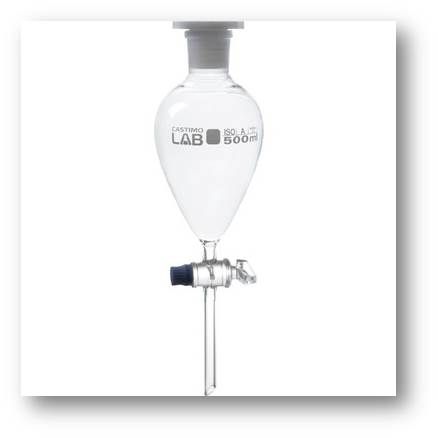 Birbiri ile karışmayan sıvıları ayırmada ve ekstraksiyon işleminde kullanılan armudi ya da konik şekilli, alt kısımlarında bir musluk bulunan, dereceli ya da derecesiz ve kapaklı cam malzemelerdir. Bu malzemeler, 50, 100, 250, 500, 1000 ve 2000 mL.lik hacimlere sahip olabilirler. Ayırma işlemi için sıvı-sıvı heterojen karışım ayırma hunisine alınıp kapağı kapatılır ve önce kuvvetle çalkalanır bu şekilde huninin basıncı boşaltılır. Heterojen karışım dinlenmeye bırakılır ve fazların ayrılması sağlanır. Yoğunluğu düşük olan sıvı üstte, daha büyük olan ise altta birer faz oluşturur. Ayırma hunisinin musluğu açılır, alttaki sıvı, toplama kabına alınarak musluk kapatılır. Böylece iki sıvı birbirinden ayrılmış olur.